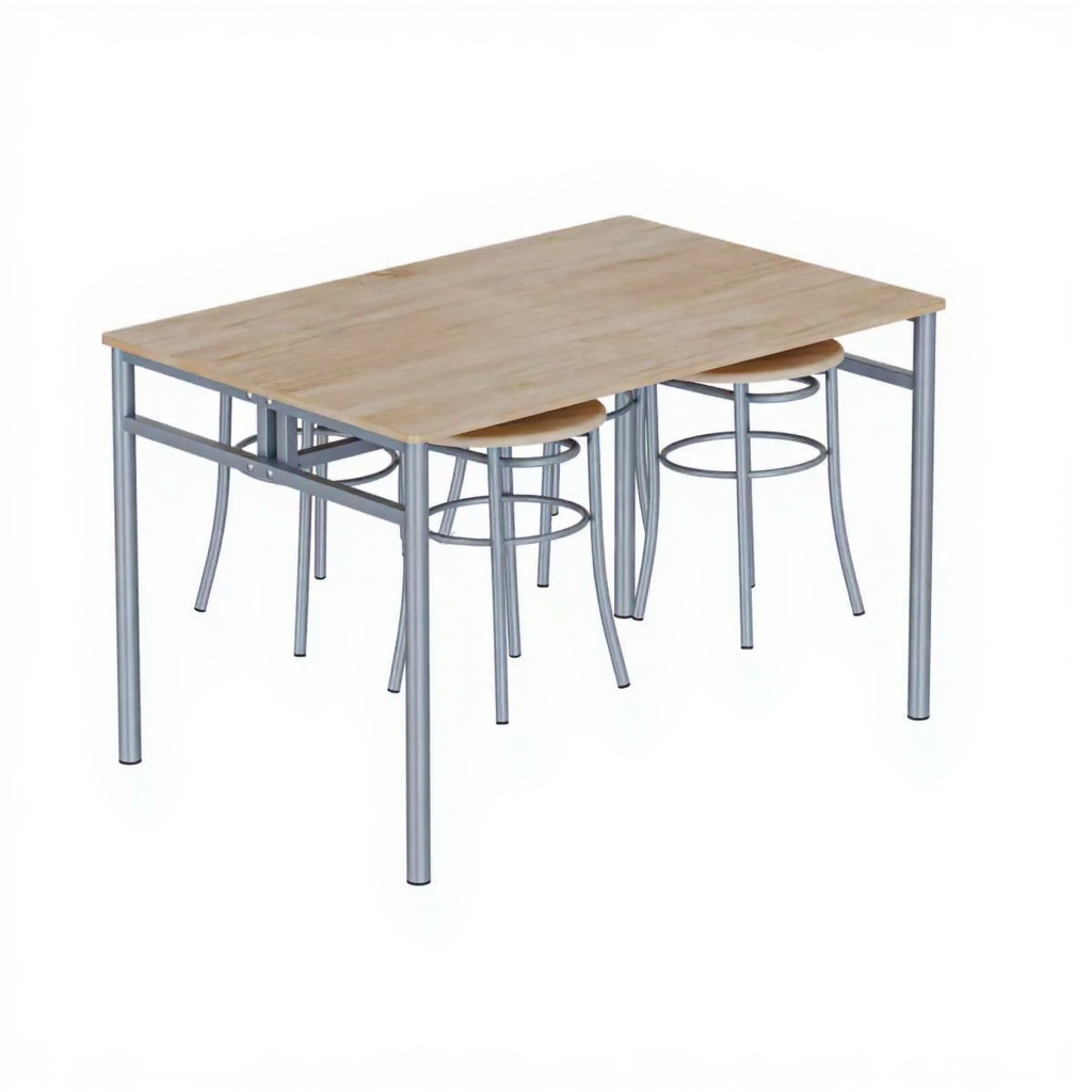 - Компактные табуреты — круглые табуреты легко размещаются вокруг стола, экономя пространство.