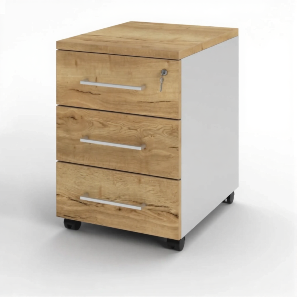 Тумба подкатная ТП-23.1 (с замком) (ЛДСП белый, дуб вотан) это необходимая составляющая для оснащения современного офиса, обеспечивающие комфорт, надежность и удобство вашего рабочего пространства