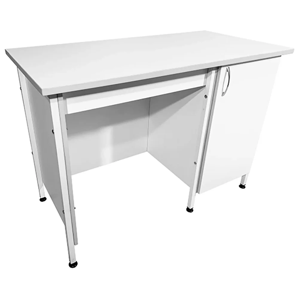 Стол лабораторный СЛ 12.009 (белый) — это идеальное решение для организации рабочего места сотрудников в лабораториях и медицинских учреждениях. Модель оснащена тумбой с распашной дверкой и полкой, а также защитным экраном из ЛДСП. Каркас выполнен из стального профиля, столешница из ЛДСП толщиной 22 мм.