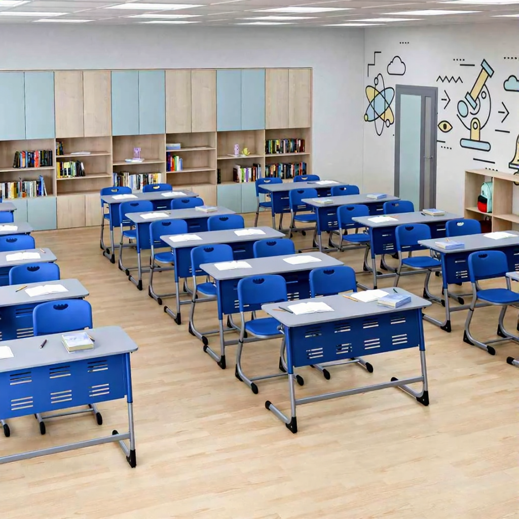 - Эргономичный дизайн — продуманная конструкция обеспечивает комфортную посадку двух учеников.