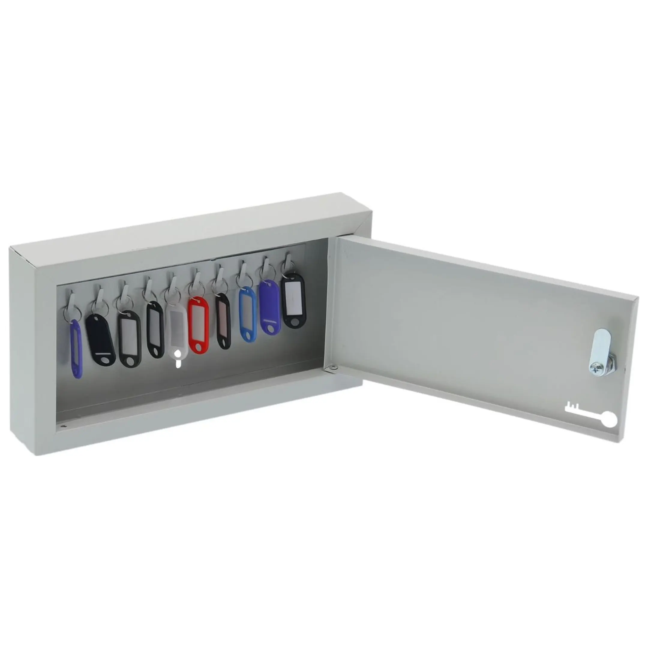 - Максимальная компактность для минимального набора ключей — ключница рассчитана на хранение 10 ключей, что делает ее идеальным выбором для персонального использования, хранения ключей от личного кабинета, сейфа, почтового ящика или небольшого набора служебных помещений. Ее миниатюрные габариты позволяют разместить шкаф в любом удобном месте.