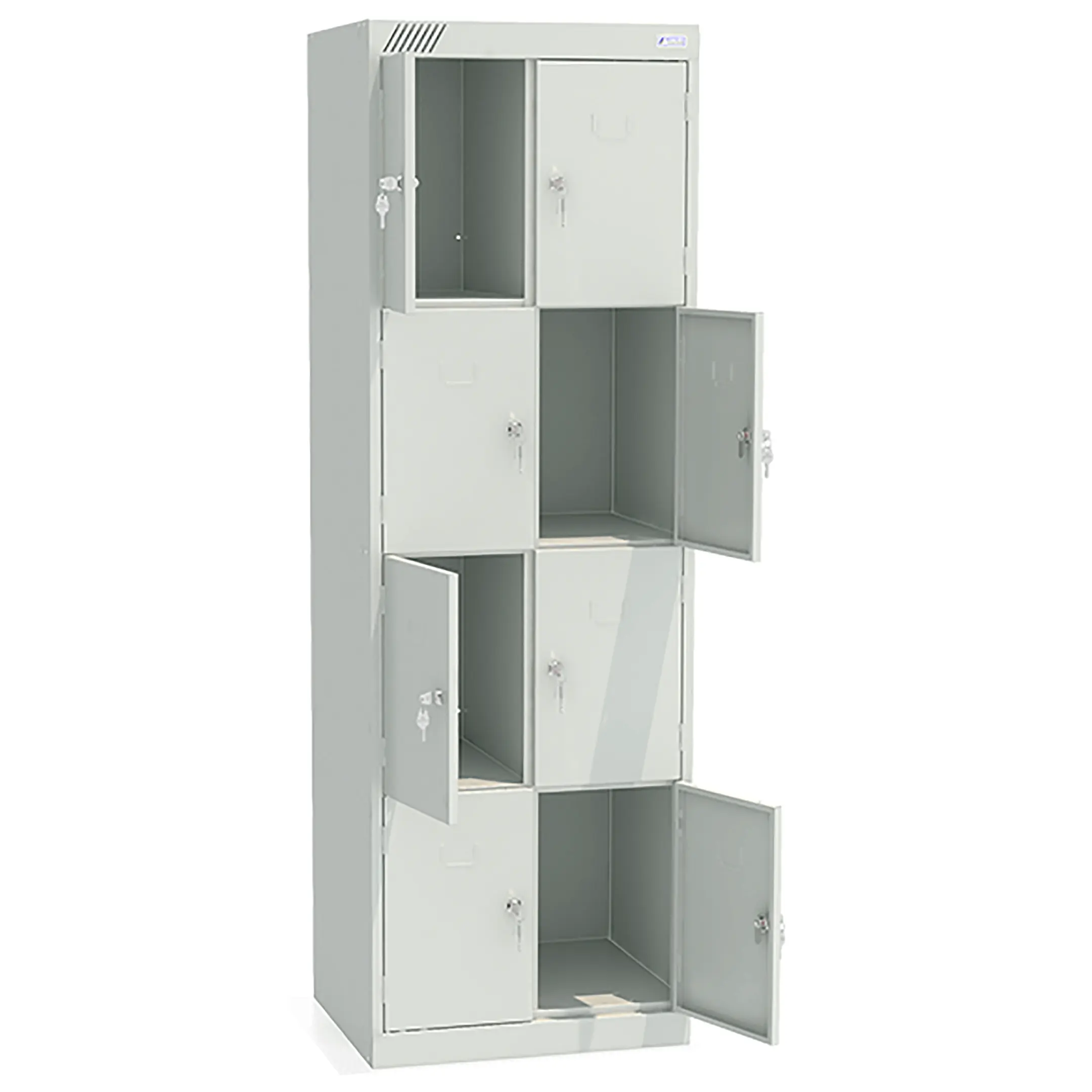 - Вместительная конструкция — две секции и восемь ячеек обеспечивают индивидуальное хранение для нескольких человек.