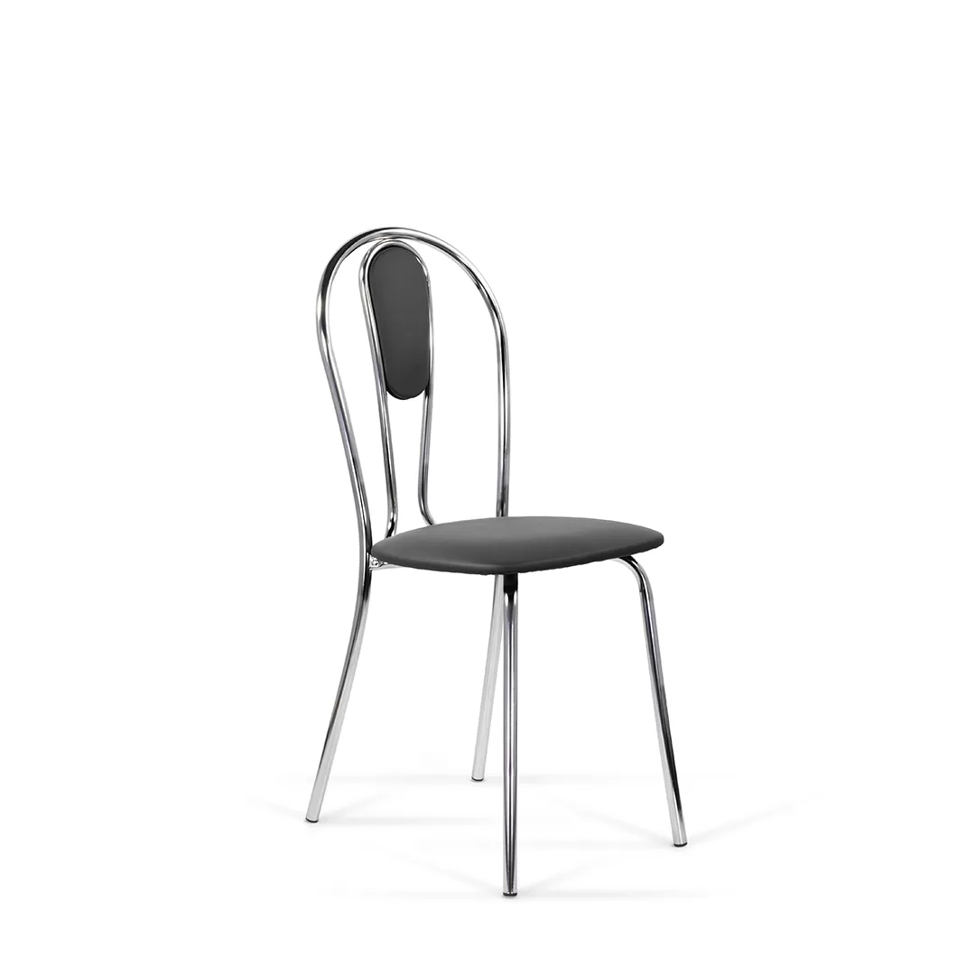 Мягкая вставка на спинке дополняет изящный дизайн стула, что позволяет ему сочетаться с разными интерьерами. Подходит как для домашнего использования, так и для мест общественного питания. Каркас стула выполнен из хромированного металла.