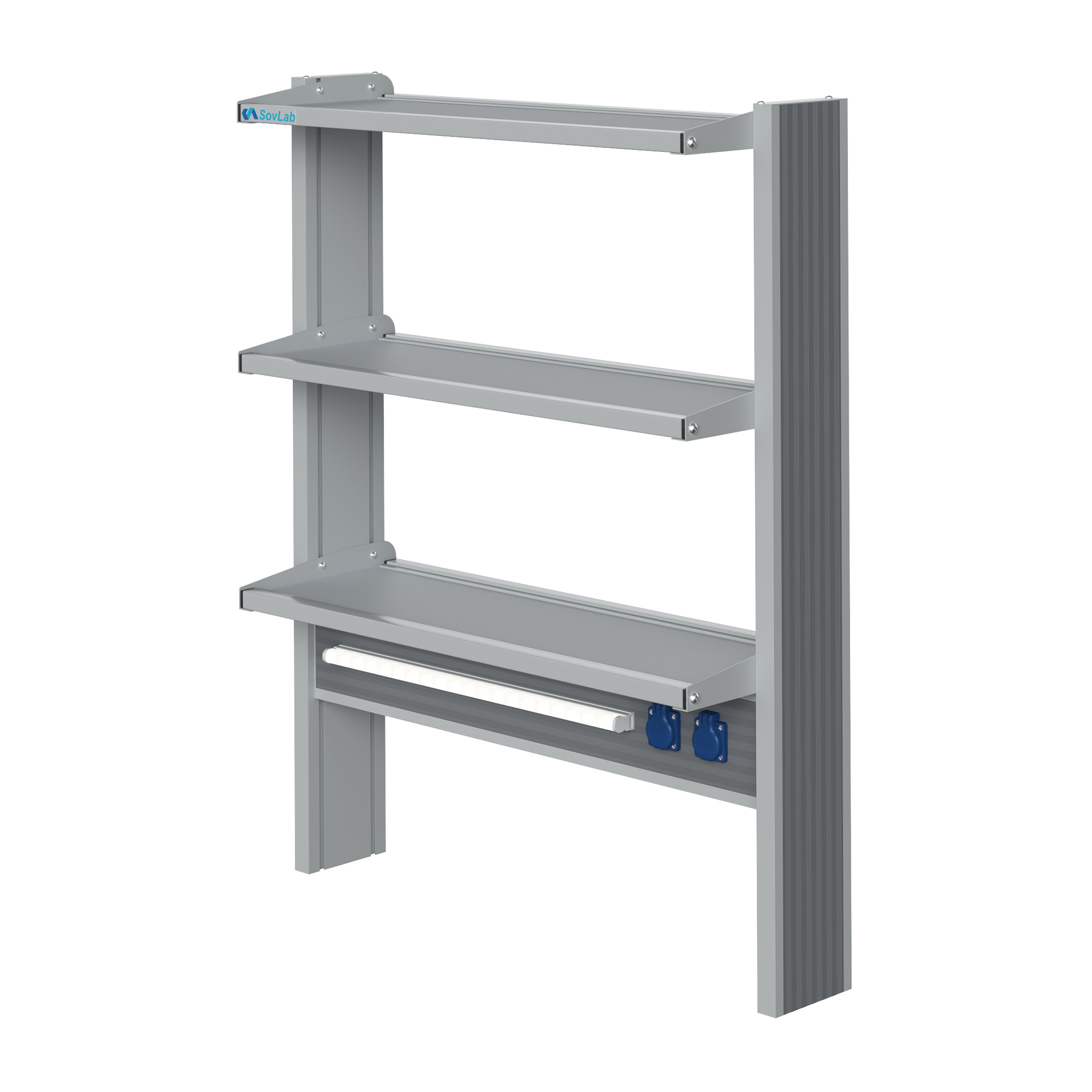 Технологический пристенный высокий стеллаж Mod. 900 ТСПв — это специализированное лабораторное оборудование, устанавливаемое на рабочую поверхность пристенных лабораторных столов и предназначенное для размещения лабораторной посуды, расходных материалов, инструментов, приборов и другого лабораторного оборудования. Модель оснащена тремя полками, блоком брызгозащищенных розеток и светодиодным светильником для местного освещения рабочей зоны.
