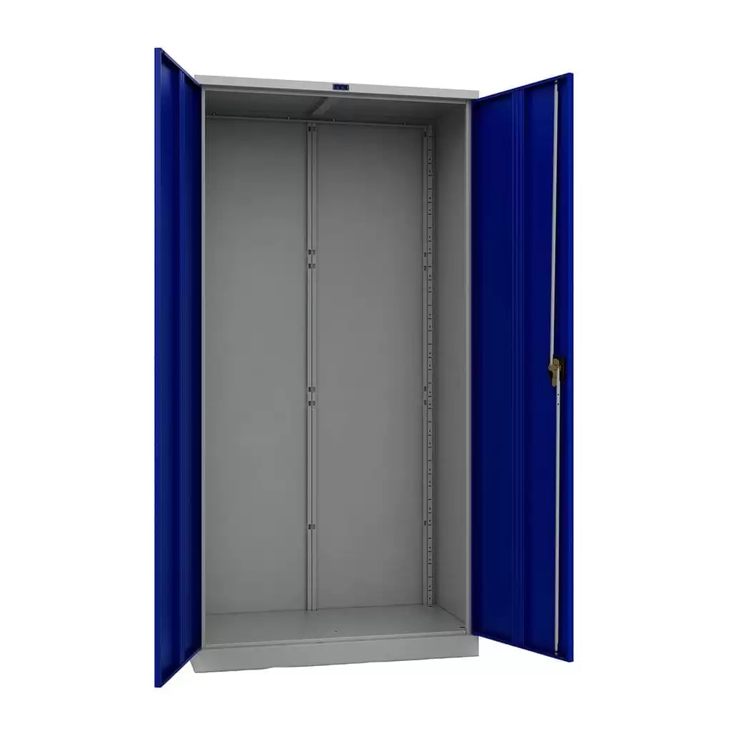 - Максимальная вместительность и продуманная компоновка — шкаф сочетает зоны для инструмента на перфорации с несколькими регулируемыми полками для крупногабаритного оборудования, а также часто включает выдвижные ящики с органайзерами для метизов, мелких деталей и оснастки. Это позволяет хранить весь необходимый инструментарий в одном месте.