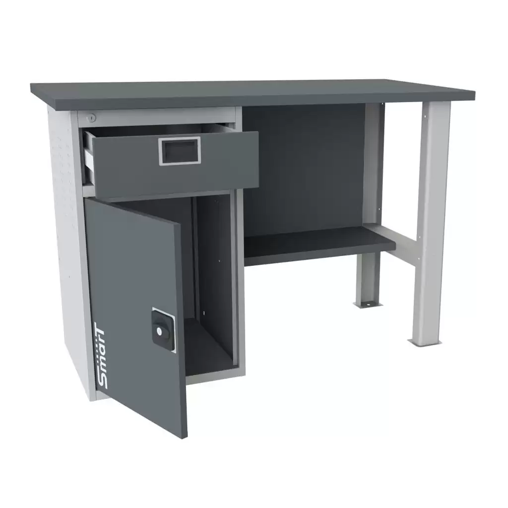 Верстак SMART 1280.1-1.S1.0 — это надежное и функциональное решение для организации рабочего места в легких производствах, мастерских и гаражах. Элементы изготовлены из высококачественной листовой стали, а покрытие устойчиво к механическим воздействиям и агрессивным жидкостям.