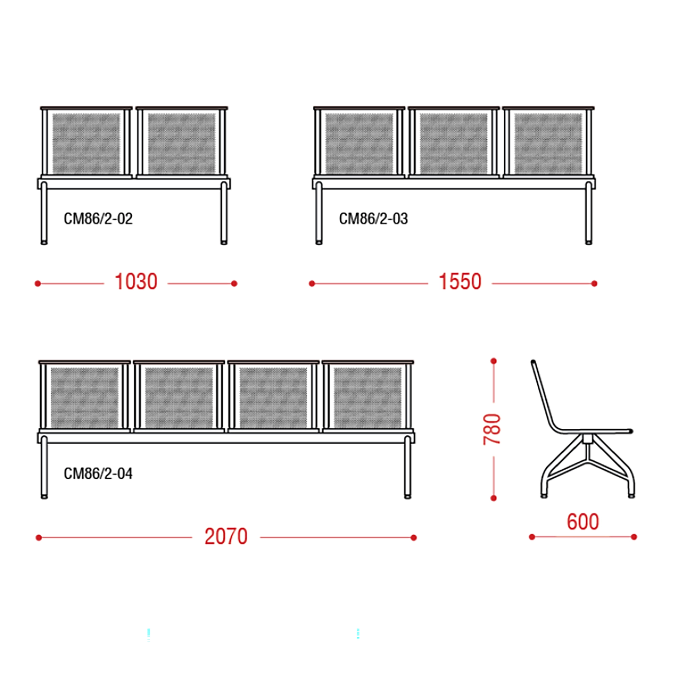 Многоместная секция в антивандальном исполнении оптимальный вариант для вокзалов, аэропортов, стадионов, холлов школ, коридоров больниц, поликлиник и общежитий. Там, где большая проходимость людей, и цель качественно и недорого создать комфортные условия для посетителей.