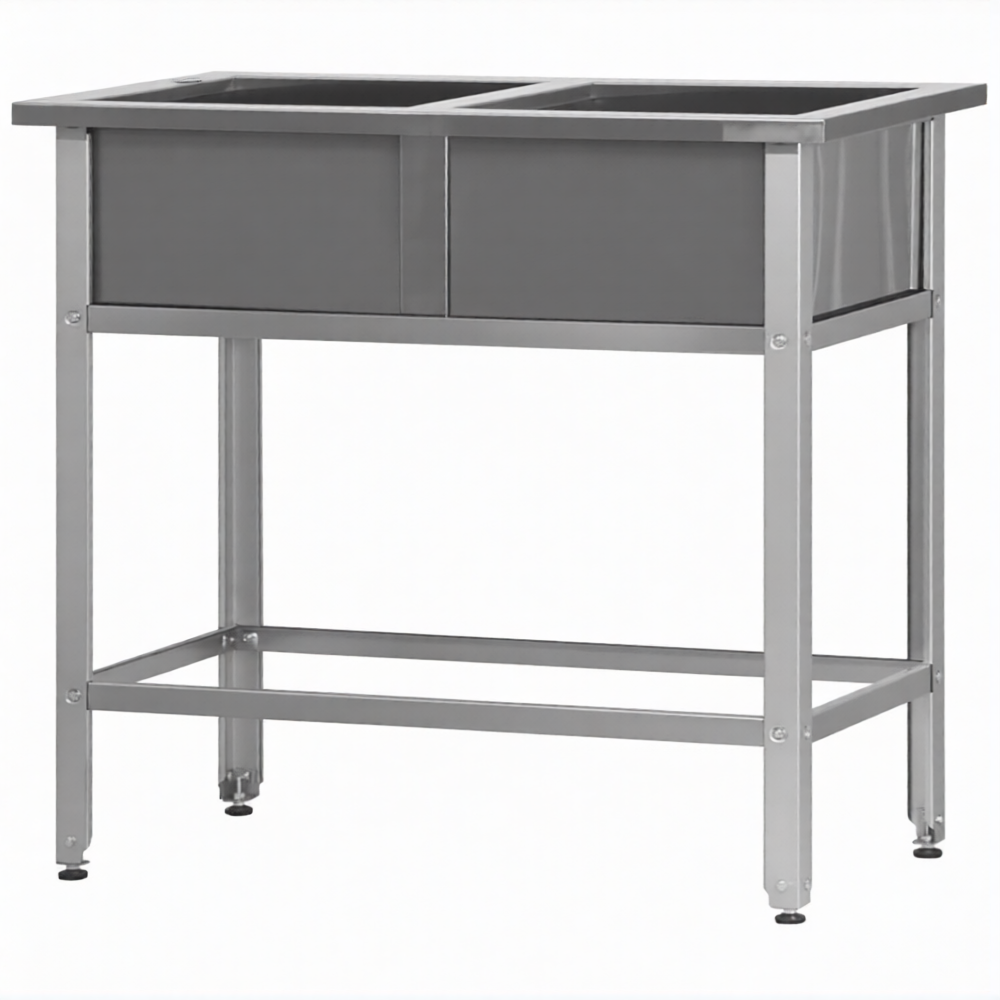 Ванна моечная ВМСн 700/2 2 м/о 600х600х350 (полка с отв., борт;ножка угл.)
