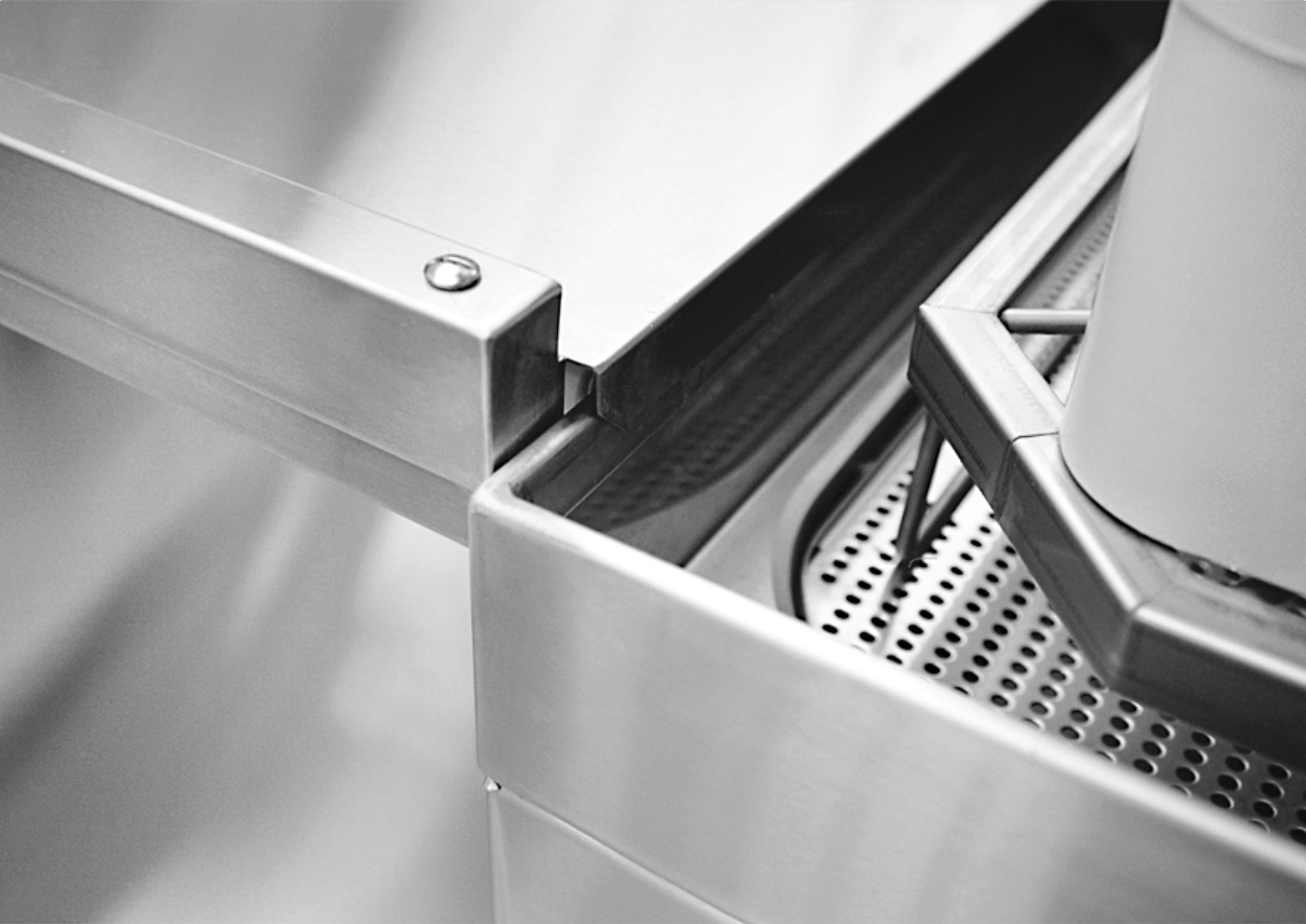 крепление к посудомоечной машине при помощи верхнего зацепа и нижних винтов;