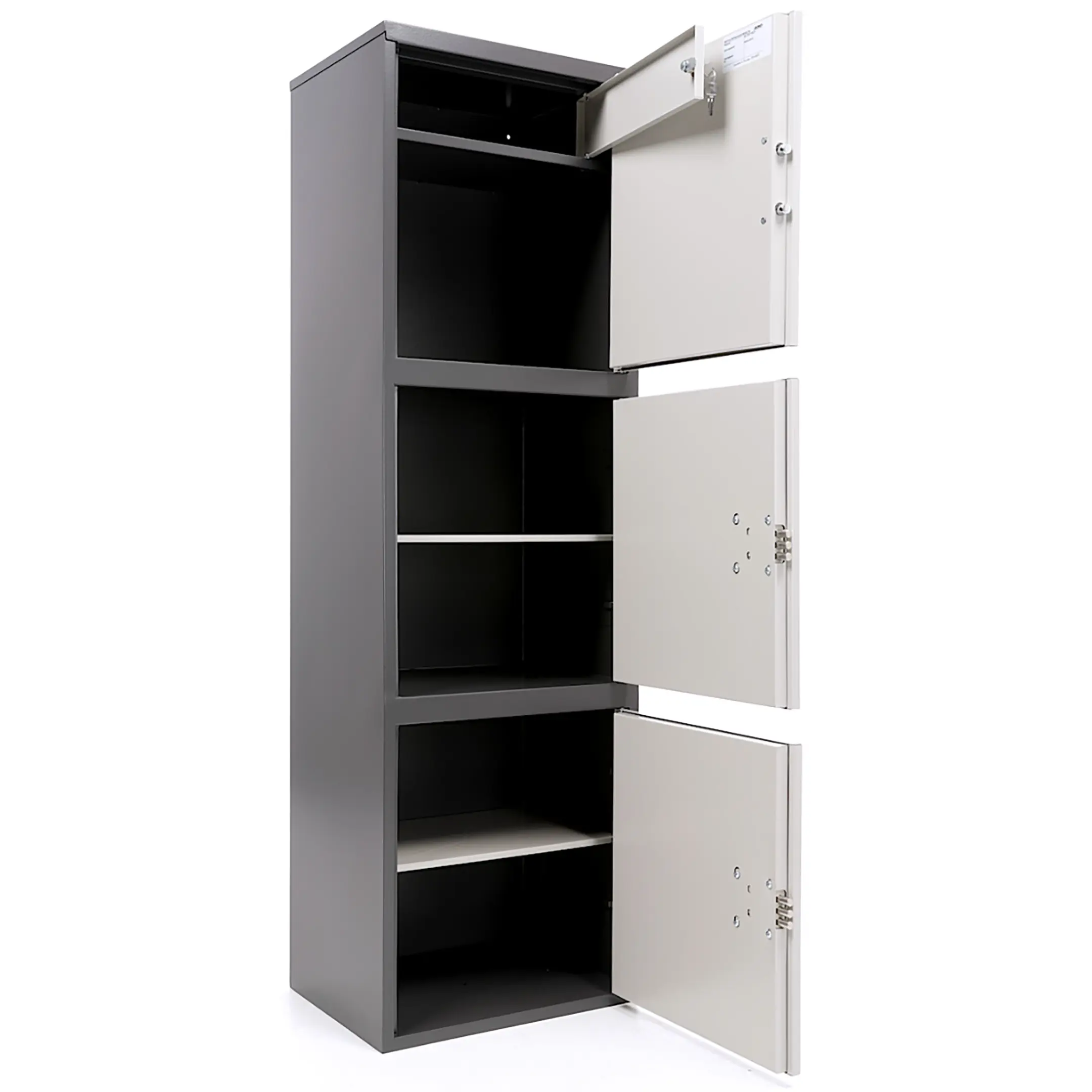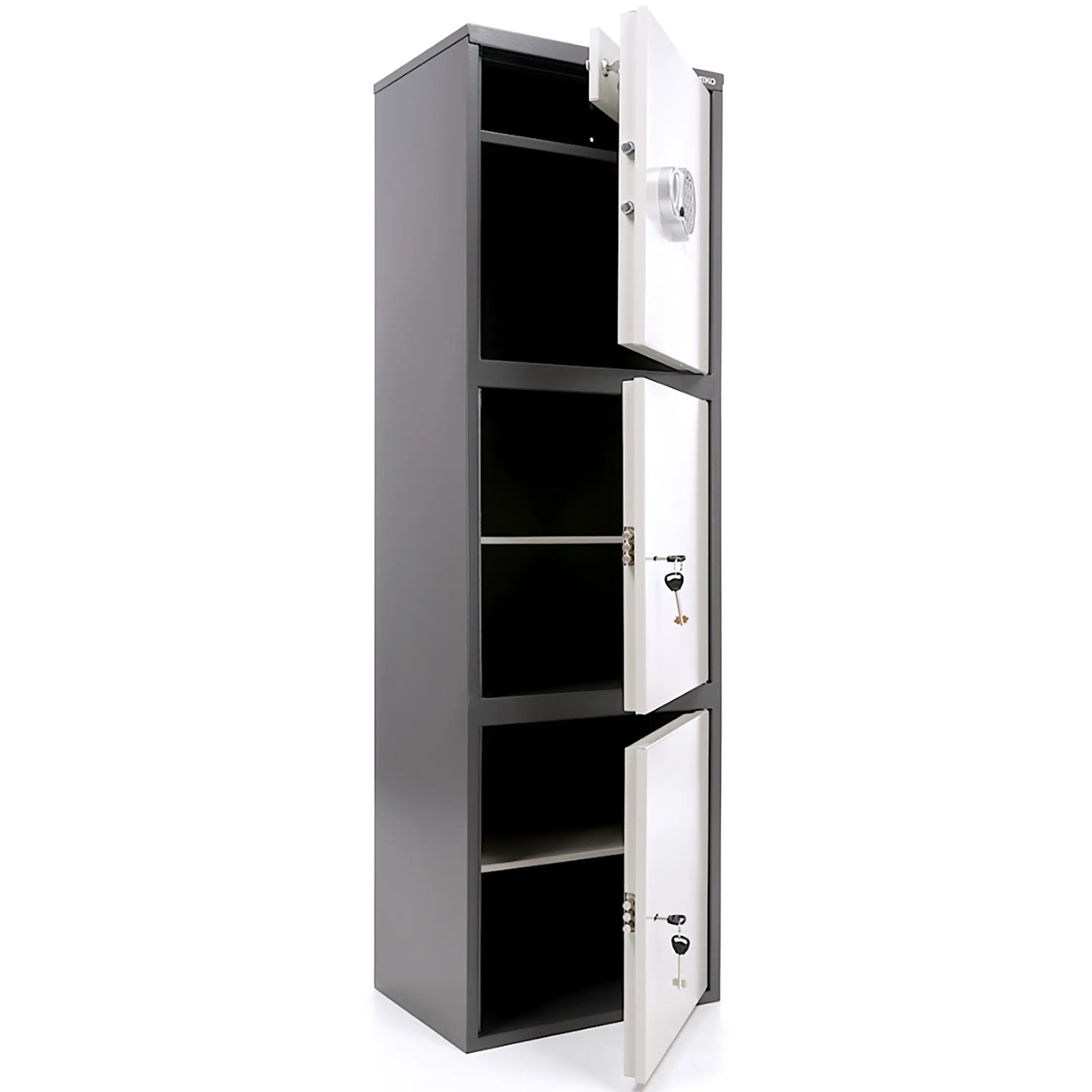 - комплектуется ключевым замком + электронный замок PLS-1( электронный замок устанавливается только на верхнюю дверь, на остальные – ключевой);