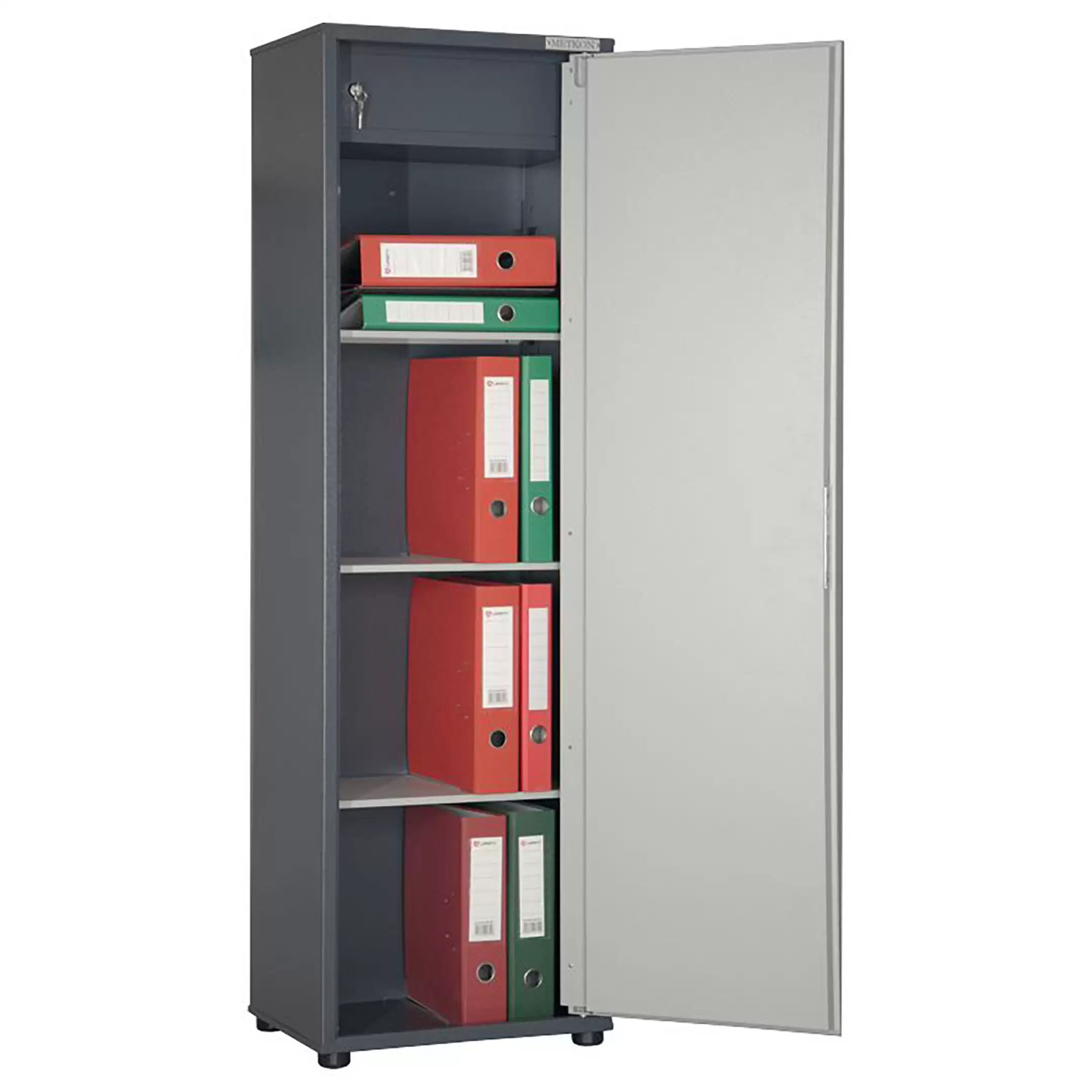 - Надежная конструкция и безопасность — шкаф изготовлен из прочной листовой стали с антикоррозийным порошковым покрытием, две распашные дверцы оснащены встроенными замками с индивидуальными ключами, обеспечивая защиту конфиденциальной документации и ценного имущества от несанкционированного доступа.