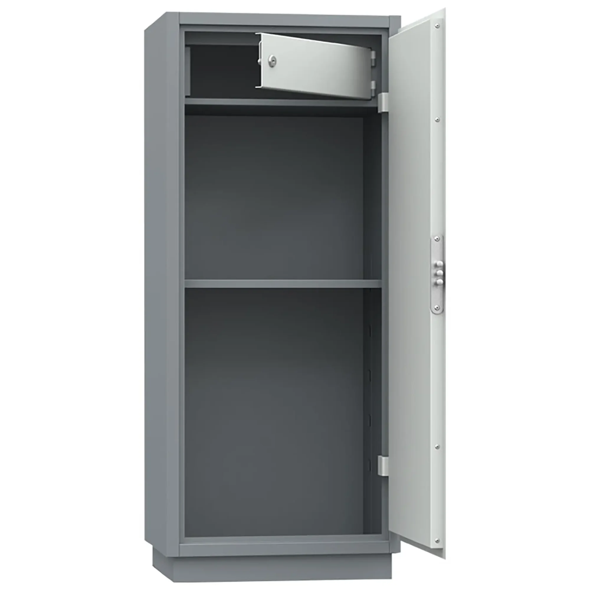 • Дверь шкафа имеет усиленную конструкцию. Безопасность содержимого обеспечивают замок сувальдного типа (3 ключа в комплекте);