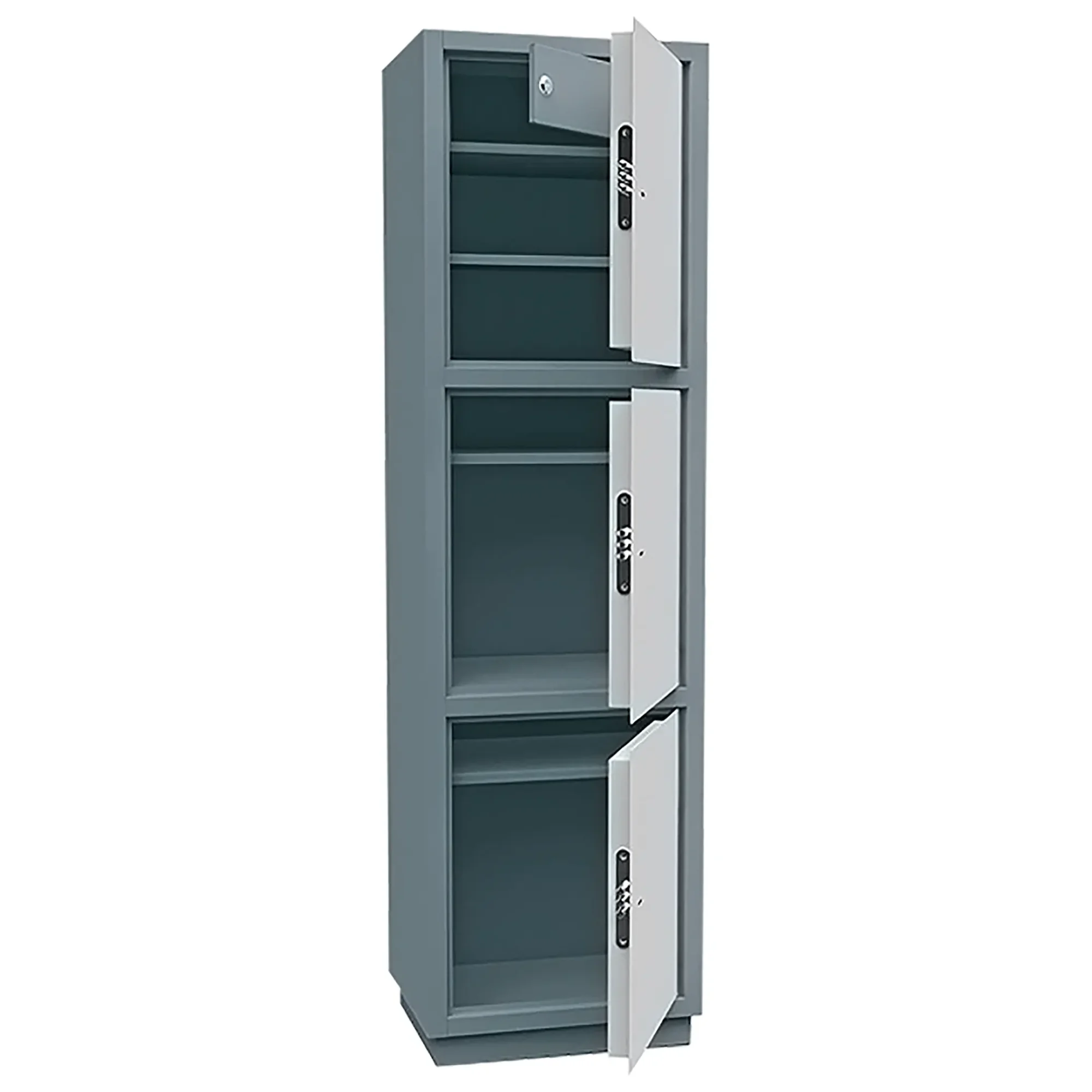 • Дверь шкафа имеет усиленную конструкцию. Безопасность содержимого обеспечивают замок сувальдного типа (3 ключа в комплекте);