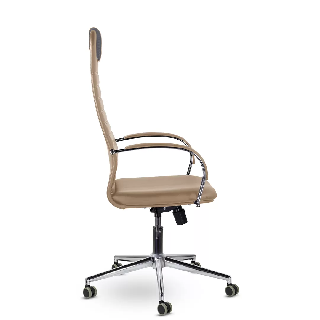 - Хромированные элементы — крестовина и другие детали добавляют презентабельный вид и устойчивость конструкции.