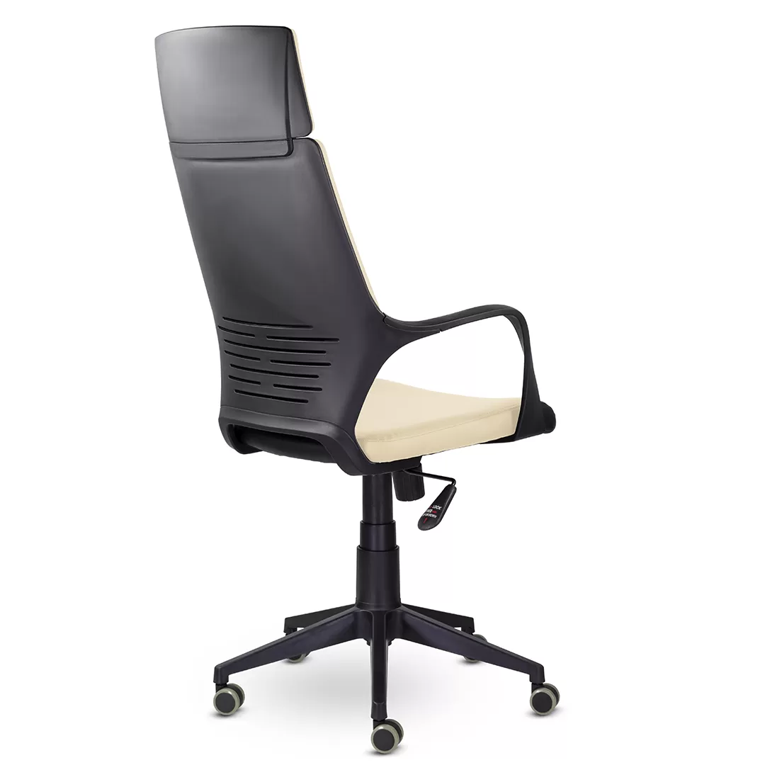 - Пластиковая крестовина и ролики — устойчивая основа и лёгкое перемещение по офисным покрытиям.