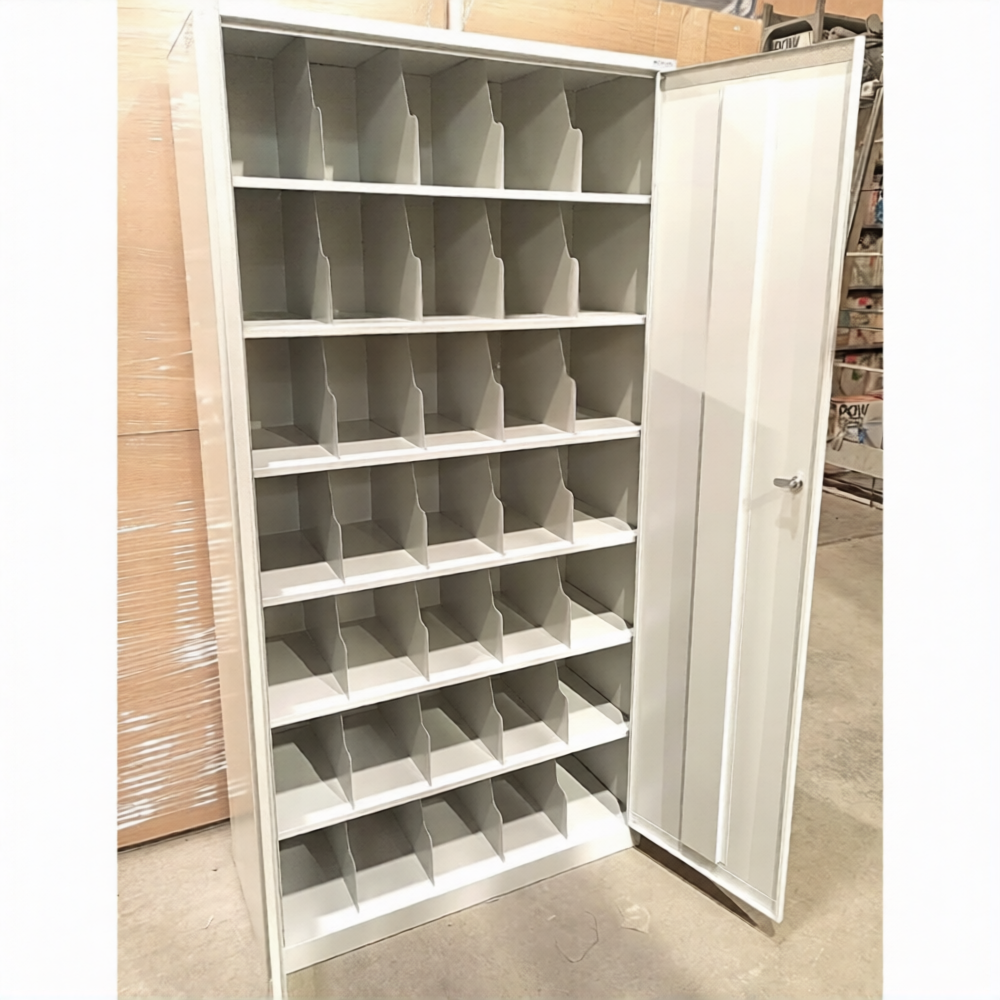 - 35 ячеек, две дверцы, скошенные полки для удобства хранения СИЗ.