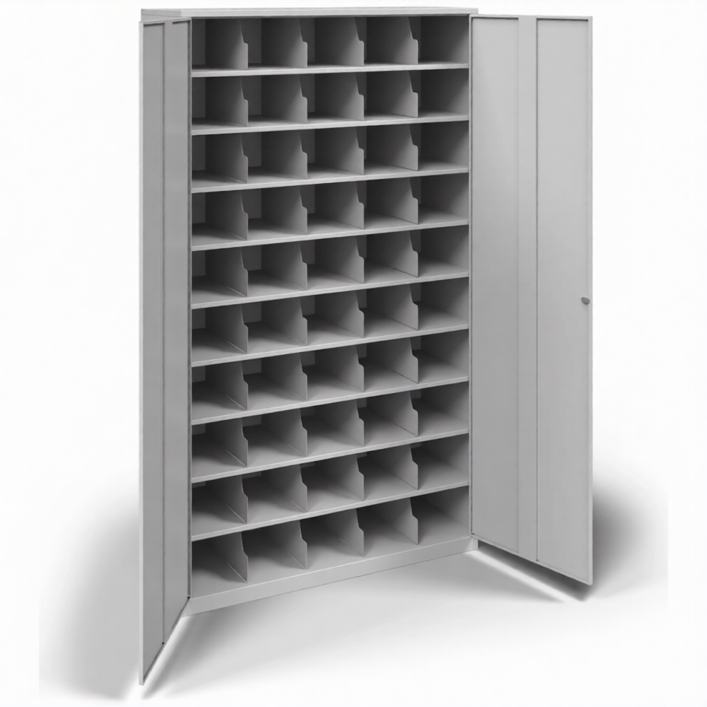 • Размеры ячейки (ВхШхГ) в мм: 180х219х380. Две дверцы. 50 ячеек.