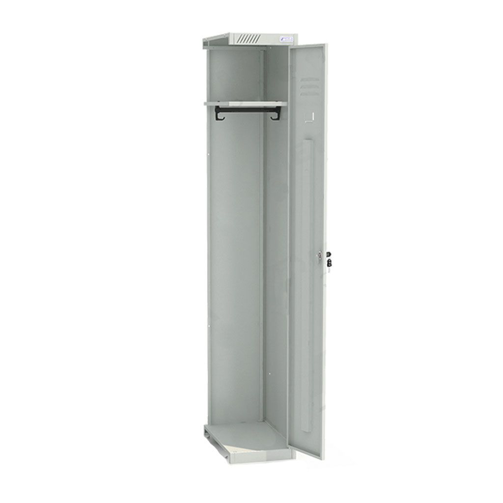 Металлический модульный шкаф для одежды ШРС-11-400 ДС используется для хранения сменной одежды в офисных, производственных, спортивных помещениях.