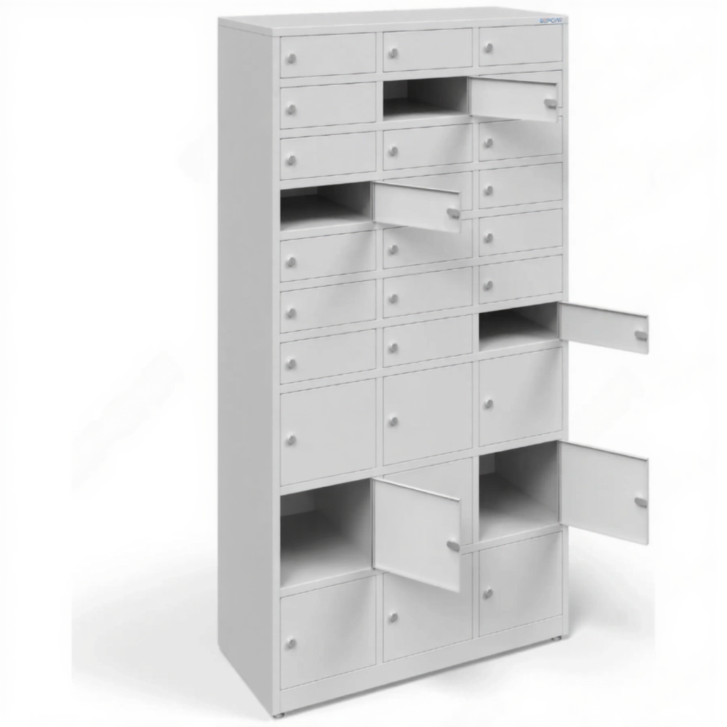 - Надежная конструкция для интенсивного ежедневного использования — оборудование изготовлено из прочных материалов, рассчитанных на высокие нагрузки в условиях учреждения. Каждая ячейка оснащена надежным замком, обеспечивающим физическую защиту устройств от кражи и несанкционированного доступа, что гарантирует сохранность имущества пользователей.