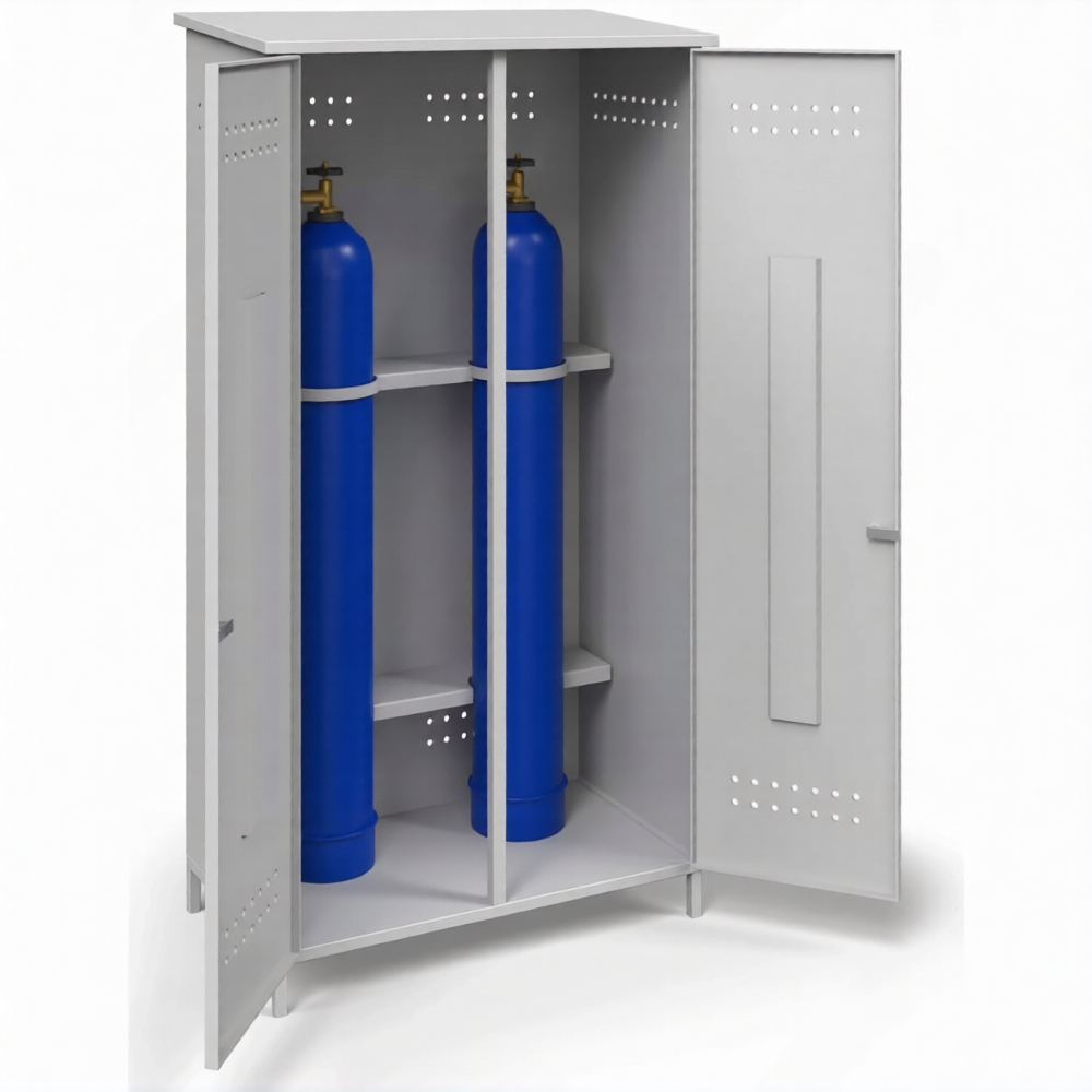 Шкаф металлический для 2-х газовых баллонов ШГБК усиленный (2000х1000х560) — это универсальное, надежное и практичное решение для безопасного хранения и защиты пары газовых баллонов на производственных участках, в мастерских, гаражах и на объектах с ограниченным пространством. Модель представляет собой усиленный стальной защитный шкаф без привязки к конкретной серии, где габаритные размеры 2000 мм (высота) х 1000 мм (ширина) х 560 мм (глубина) и обозначение «для 2-х баллонов» четко определяют его оптимальные параметры для размещения двух стандартных баллонов. Усиленная конструкция разработана для строгого соблюдения правил пожарной и промышленной безопасности, обеспечивая надежную защиту емкостей с газом под давлением от внешних воздействий, несанкционированного доступа и создавая безопасное и организованное место хранения.