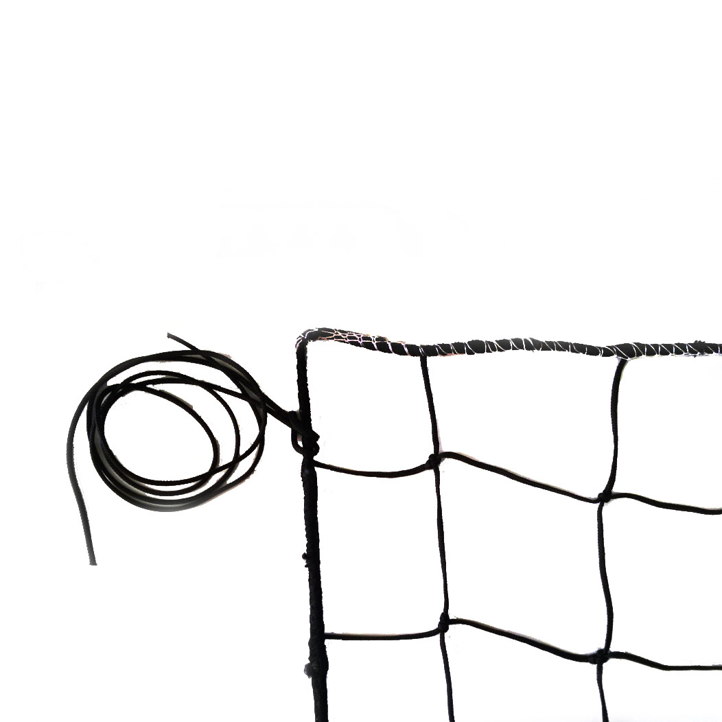 - Усиленная окантовка и надежные крепления — края сетки укреплены прочной лентой и оснащены металлическими кольцами, что обеспечивает удобство монтажа на стойки с помощью троса или веревки и защищает края от истирания.