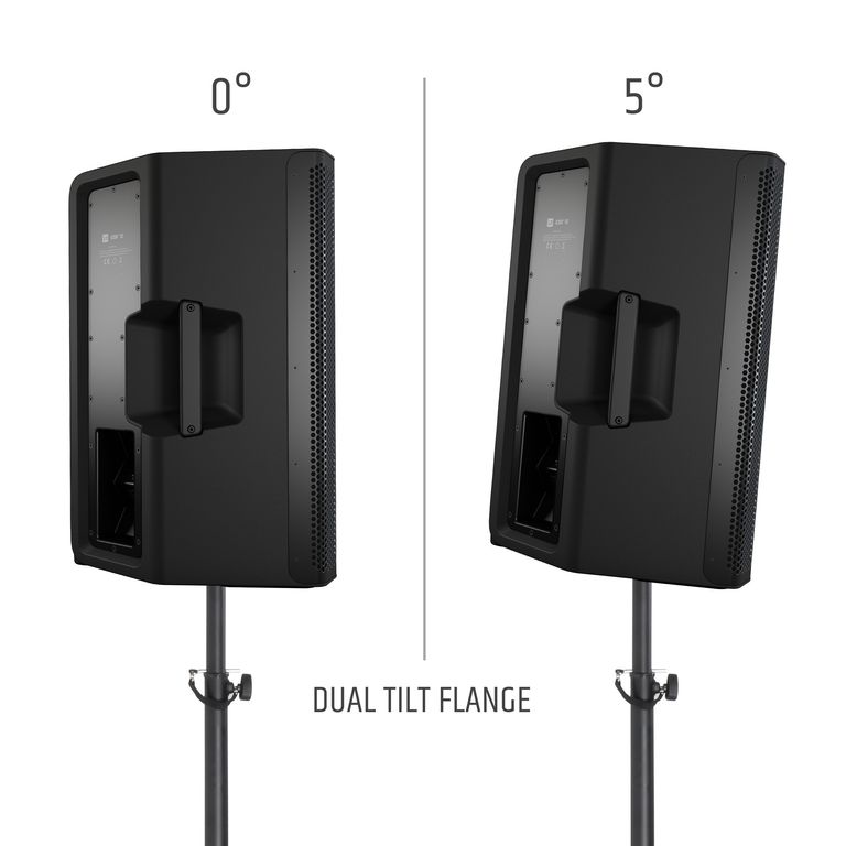 Для использования в качестве сценического монитора в акустической системе предусмотрены ударопрочная решетка гриль и вертикальный угол 55°. При вертикальном расположении в качестве сателлита предусмотрен «стакан» под стойку 36 мм с двойным углом наклона 0° или 5° для оптимального расположения системы.